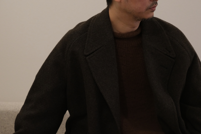 最後に最も驚いたのが身長155cmの女性スタッフがサイズ40(各プロダクトはいずれも38、40の2サイズ展開)を着用しても肩から裾に掛けて全くの違和感なく着こなせてしまったこと、171cmの私がサイズ40のサンプルを羽織ってもオーバーサイズにはなるが、しっかり納めて着用可能だった