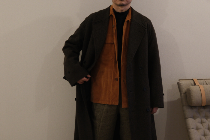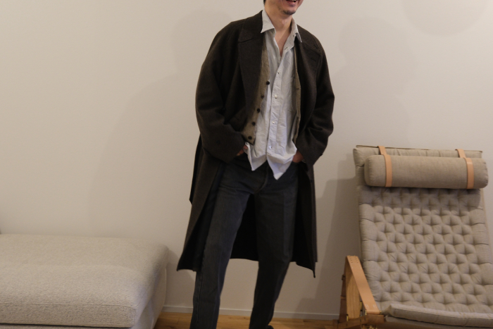 で前置きが殆ど本題になってしまったが、VELISTAが今回、買い付けたコートは三型の一つ、アルスターコートをベースにした一枚袖のオーバーコート