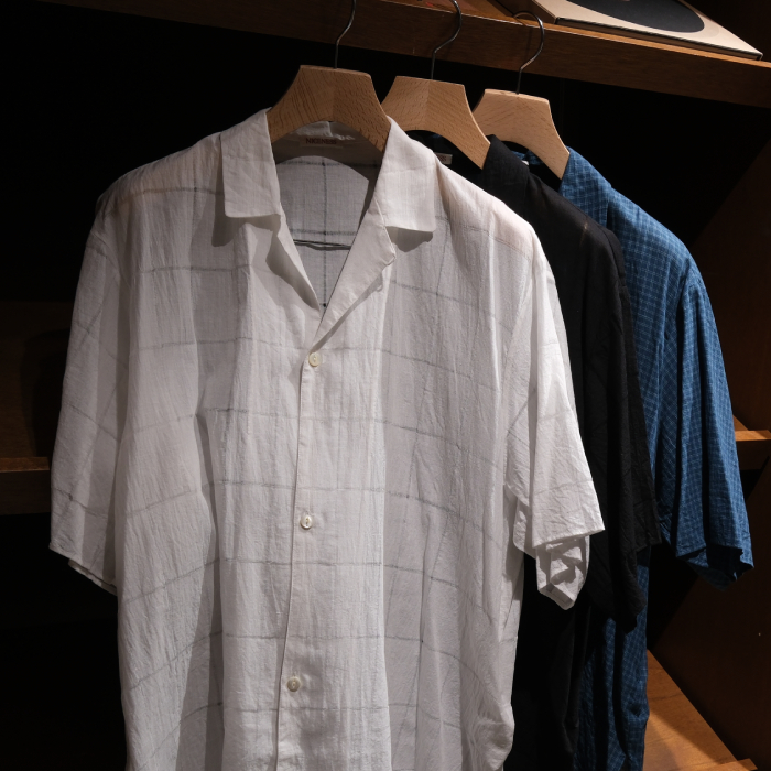(NICENESS) C.JOSHUA / C.ジョシュア (ハンドカットラティスファブリック オープンカラーシャツ)(WHITE)(BLACK)